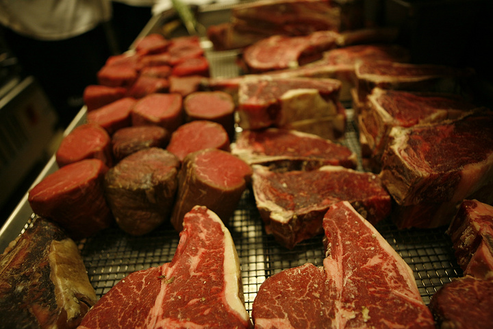 这家餐厅坚持选用镇上最好的牛排。这些牛肉表层被抹上一层海盐、黑胡椒、新鲜的迷迭香,然后挂在屋内风干,目的是在烤制时,保证其肉质鲜嫩,还带一点焦脆。Carnevino选用的牛肉全部是天然的,没有添加任何激素和抗生素。菜单里有小牛肉、猪肉、禽类、小羊肉、每日特别菜,还有十二道用蔬菜烹制而成的意大利式配菜。