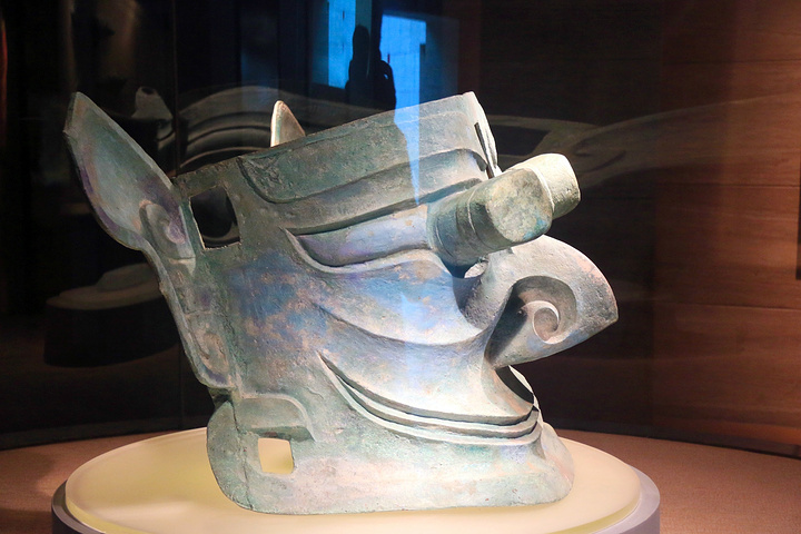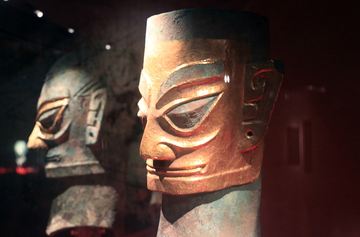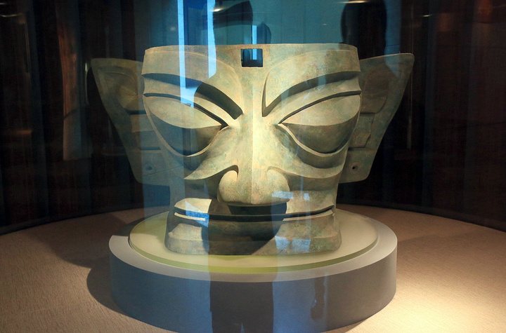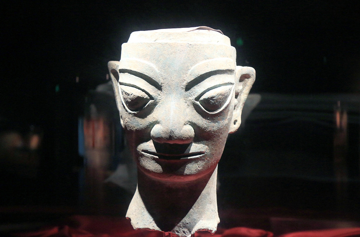 据说是三星堆出土面具人像中,唯一女性面孔。