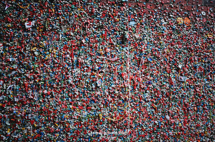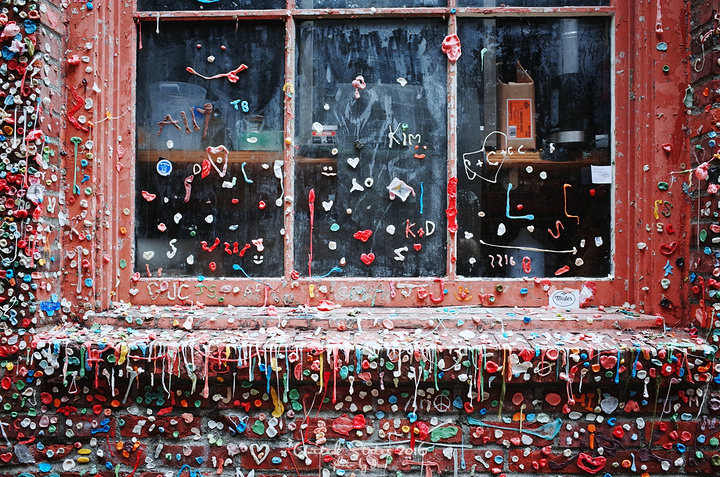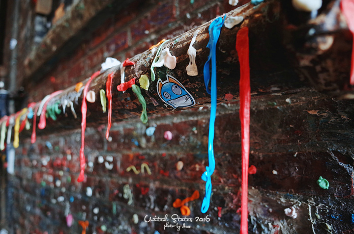 派克市场面对正门的左边,会有条小巷子,还没拐弯就会闻到一股飘香。一转弯,就见到世界最恶心景点之一的“口香糖墙”。 ❤口香糖墙Gum Wall 源于市场剧院的一项古怪传统,人们在排队等候进场的时候把嚼过的口香糖粘在这面墙上,久而久之,形成了一道五彩缤纷的独特风景,吸引着热爱艺术的人,它的特质独一无二,多元,具有平等的亲近性与表达性。 2015年12月西雅图市长决定清理口香糖墙,但是他已经做好了又会被粘回去的准备了……
