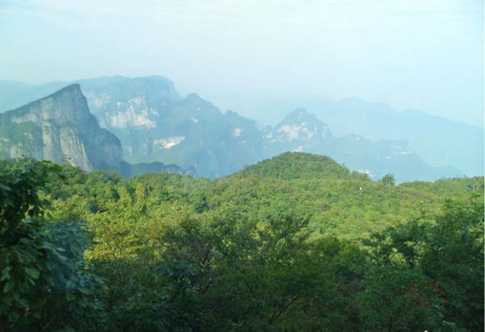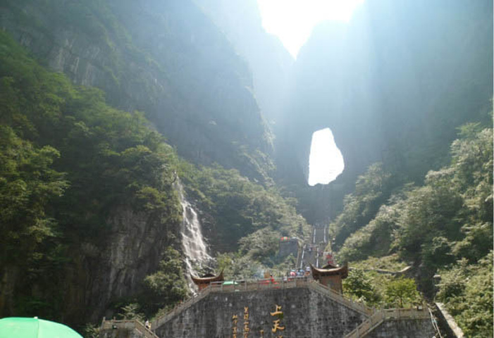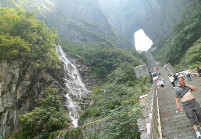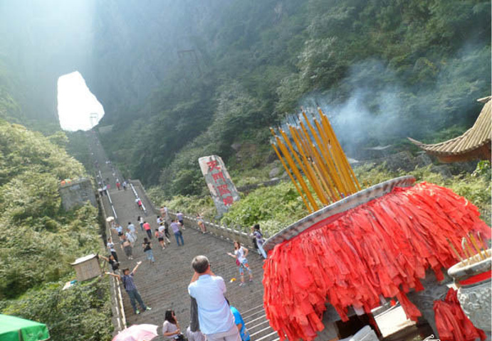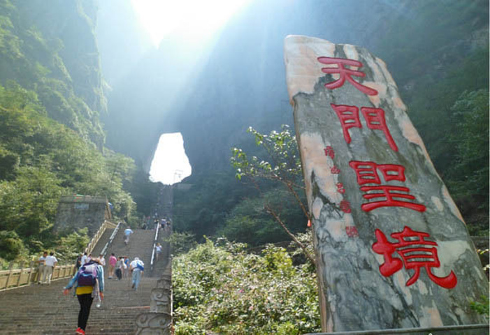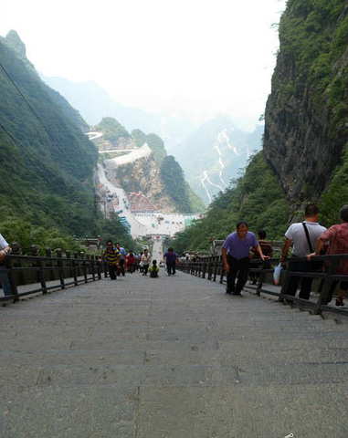 天门山全景 到达这里时已经中午12点多,随后就要爬那999级台阶了,想想前两天在张家界景区的爬上爬下,确实有些怯的慌。