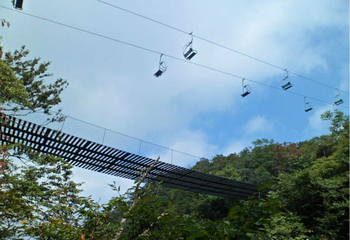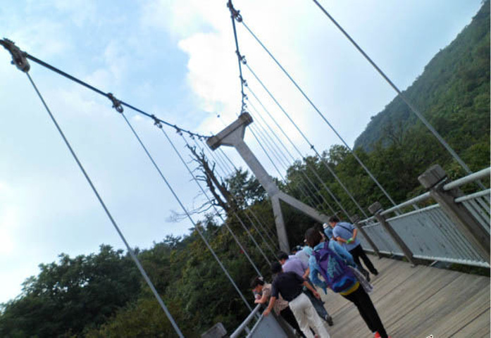 绵延长远一直到远处吊桥 刚好去时赶上导游团的时间,人很多,有海南的团,更多的是韩国的团