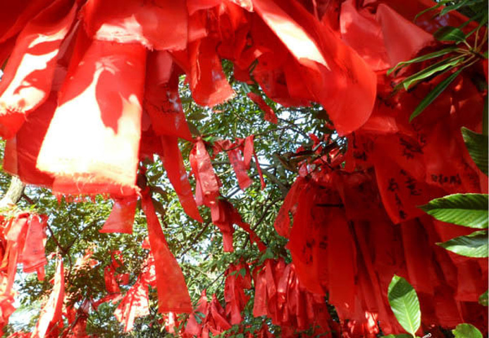觅仙奇境景区 这里景色不错,主要是有很多红飘带,都是人们上山祈祷系上去的,每个飘带上也写满了祝福