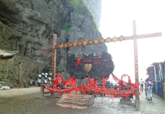下了索道,我们直接坐电梯到云梦仙顶了,以致于我们先没有去玻璃栈道!从索道下来有指示牌指示到云梦仙顶的,要进一个小隧道,尽头是电梯,一分钟不到就到达云梦仙顶的楼里。当然还有另一条路指示走向鬼谷栈道的。