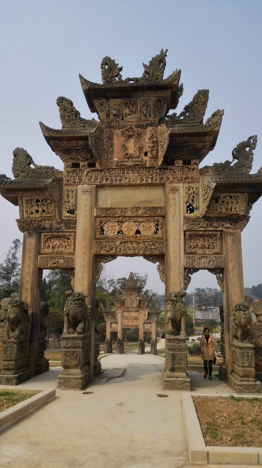 周围都是农田。这两座精美的牌坊一前一后,一高一低,就静静地矗立在开阔的田野之间。现在这里除了周围的村民,几乎没有其他游人。