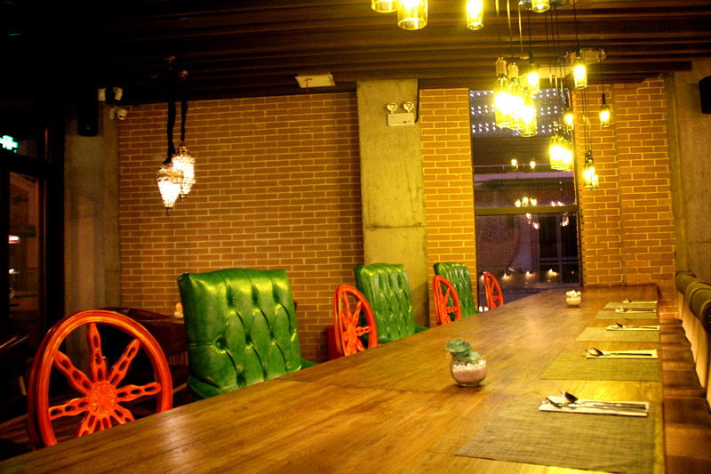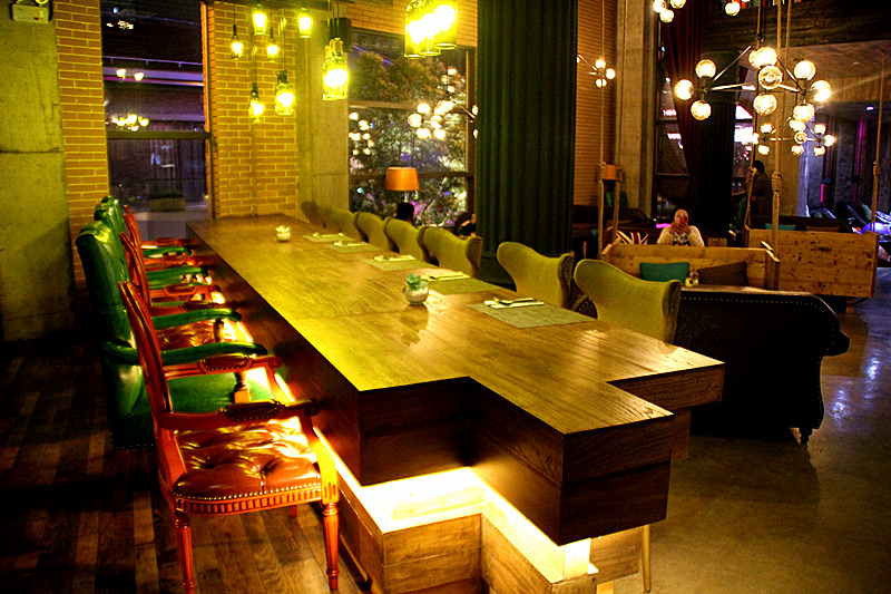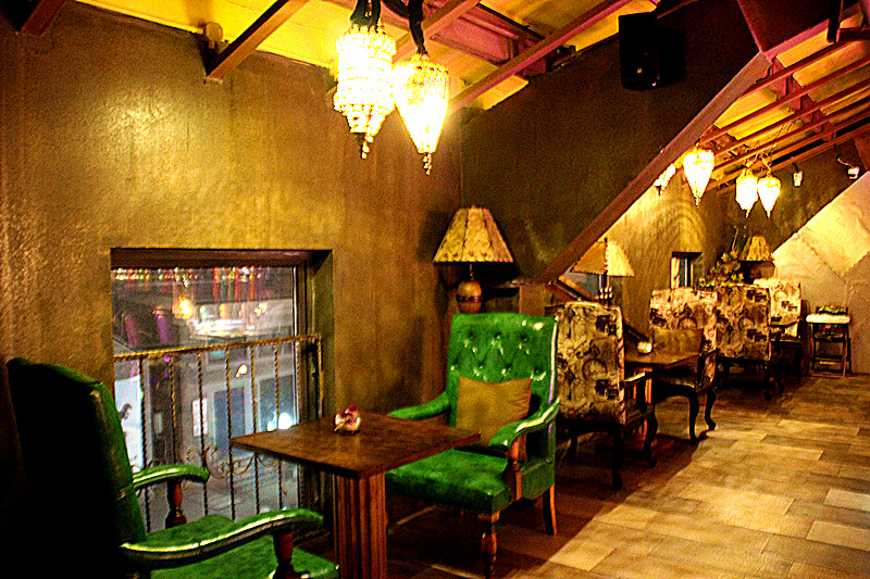 一共有三层。一层布置的较为温馨。二层是酒吧区,三层有室内帐篷。