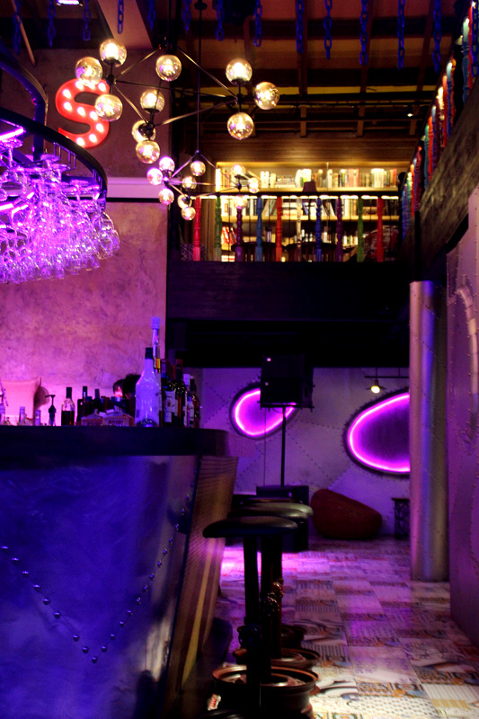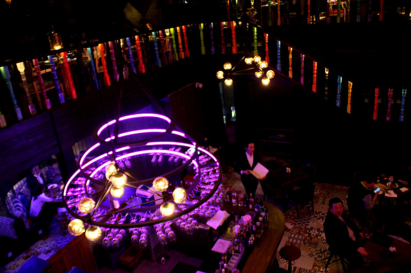 二层是酒吧区。调酒吧台也在这一区,可以欣赏调酒师调酒的过程。