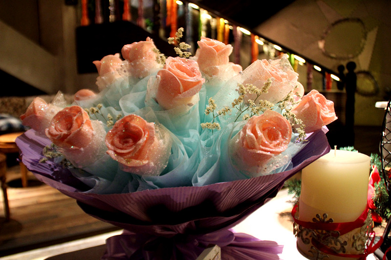 三层相比二层更安静一点,灯光是淡紫色,更适合劈情操