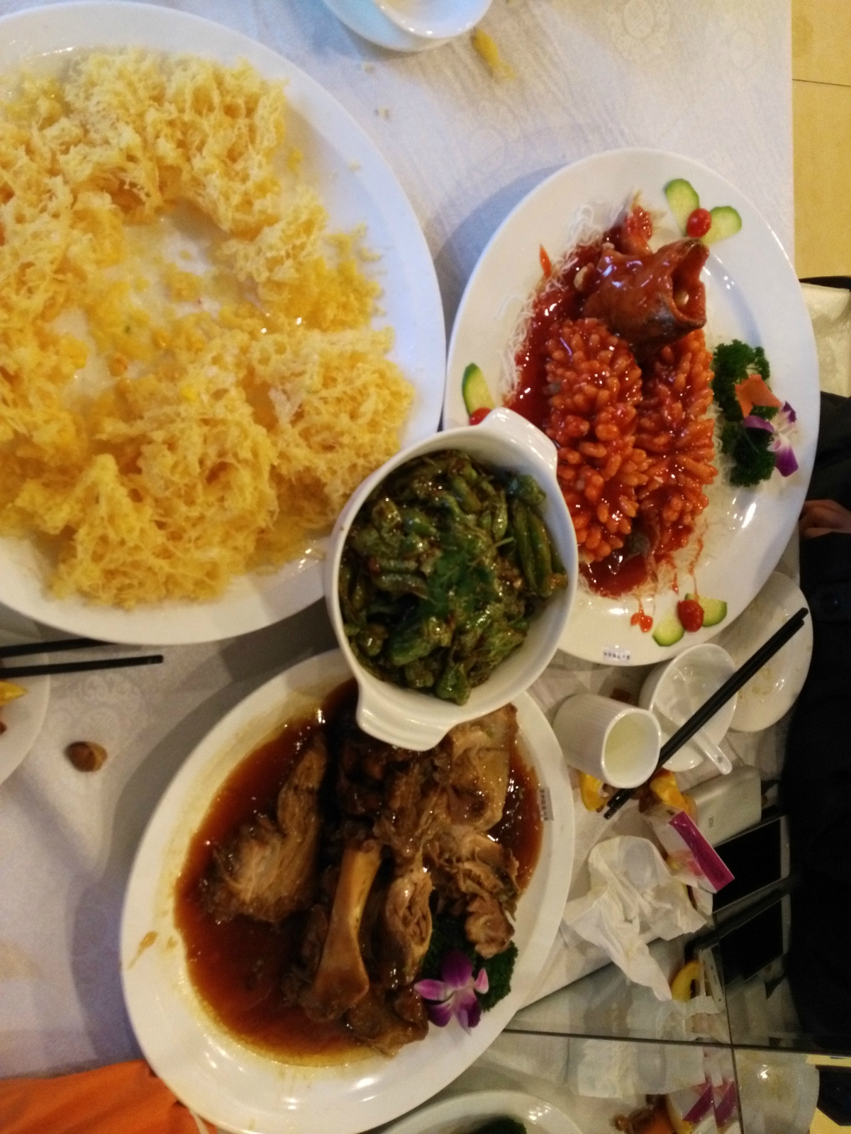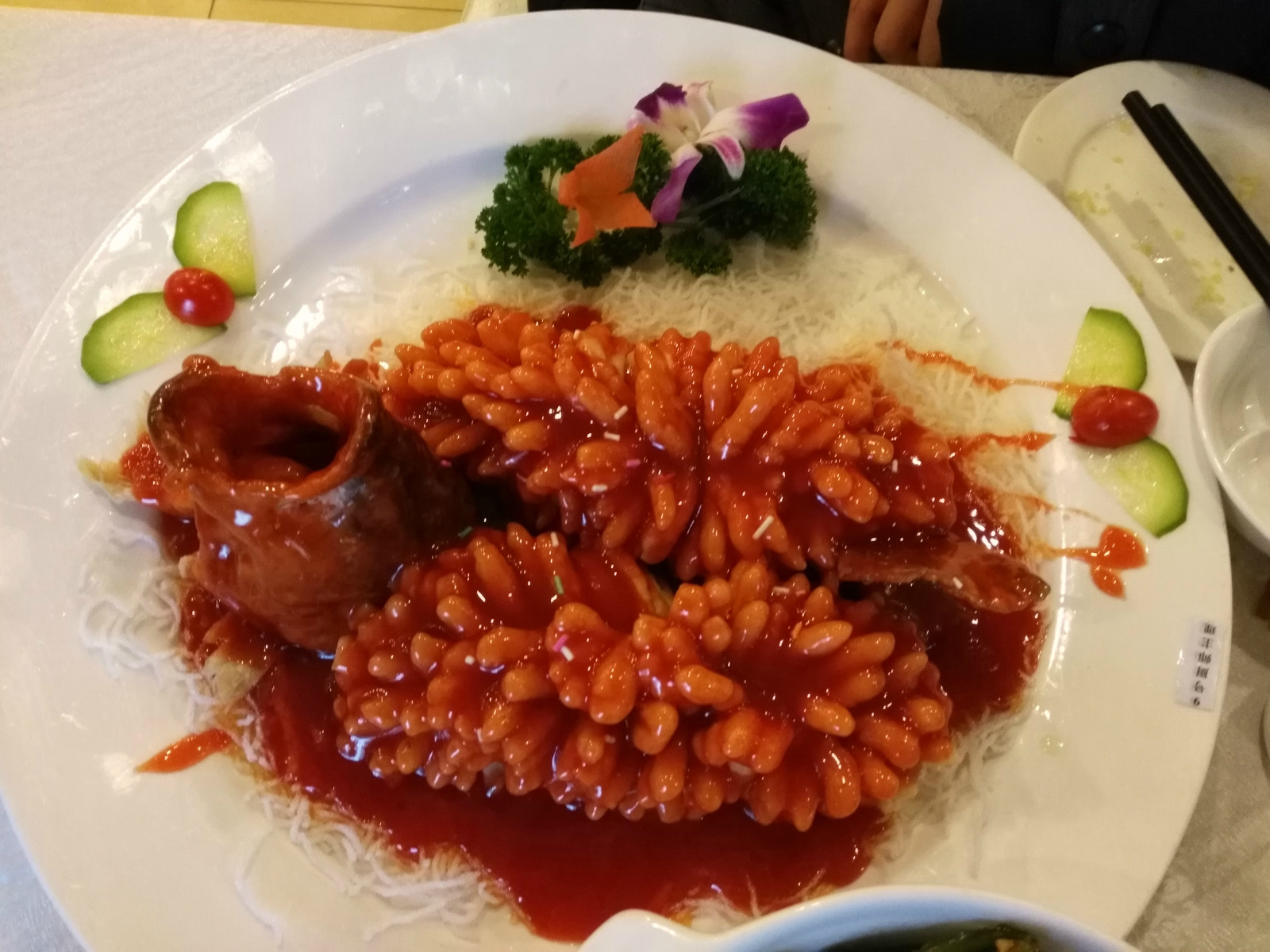 松子鱼:有卖相,外面的番茄酱也很好吃,鱼肉炸得很嫩,外面的脆位已经被番茄酱遮住了,不上火,这道菜大家都很喜欢,几乎每桌都看到这道菜,色香味俱全,点这道菜是里子面子都有,的确值得88块。当然,如果不喜欢酸酸甜甜咸咸口味的就还是不要勉强了。