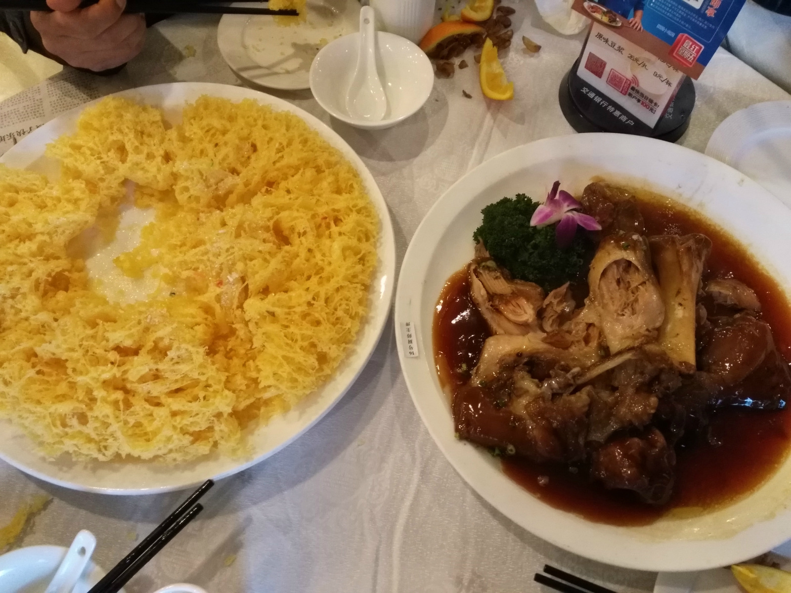 猪肘:大肘子上来的时候真心吓到我们了,我们以为是只有几块猪脚,谁知是一大盘猪肘子。糯糯的,肥而不腻,很入味,需要趁着热气腾腾的时候吃,凉了就变硬不好吃了。4个人以下就建议点个小份的猪脚,这个实在是hold不住,吃了不到一半。