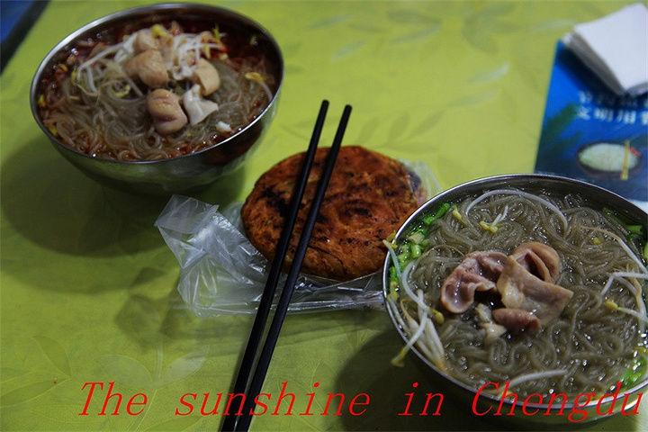 成都的生活是慢节奏的,感觉特别悠闲,大家早上起床的时候都是八,九点钟以后。今天上午的行程是马小马带我游成都拍银杏叶。 早餐在这里吃的,从未有过的味道!