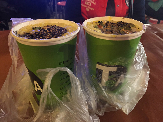 这个叫 醪糟....味道像南方的甜酒冲蛋啊 里面加些花生,芝麻,杏仁什么的