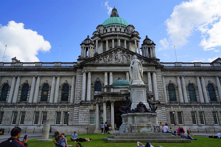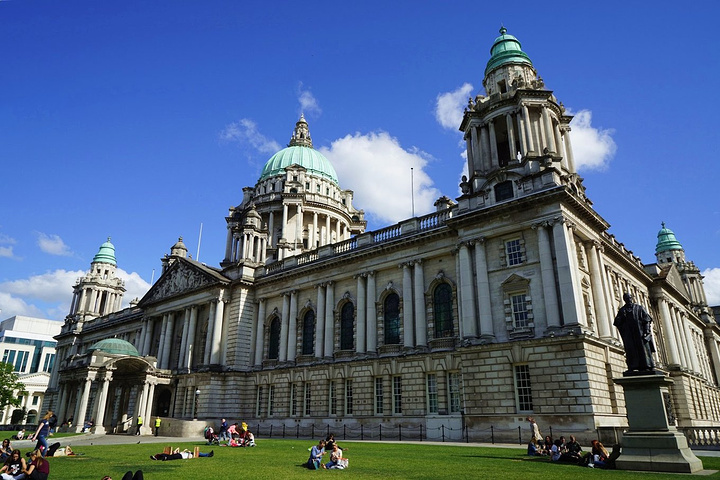 贝尔法斯特希腊风格的市政厅也是市内地标性建筑,正门前的大草坪,如今成了当地人沐浴日光浴的最佳场所。