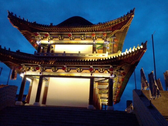 逛完彝人部落若有时间可以去逛逛韩国风情街,吃吃韩国料理,查查韩国泡菜,其中一家大长今蛮不错,一家是韩国人,儿媳是青岛人,料理挺不错,最后就到德江城。德江城是古镇的尽头,你可以选择原路返回,也可以做船沿着清明河到正大门那边,但我还有一个节目没提到,那就是彝族热情似火的篝火晚会(左脚舞),会有专人穿彝族服装领舞,动作很简单,去了一定得参与一下。