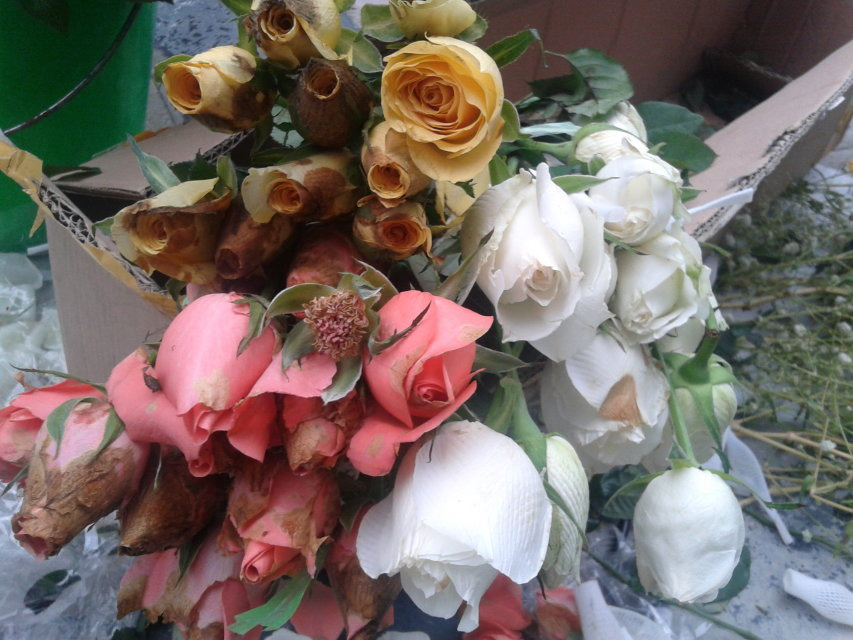 回家看到这样被压坏的花也是心碎