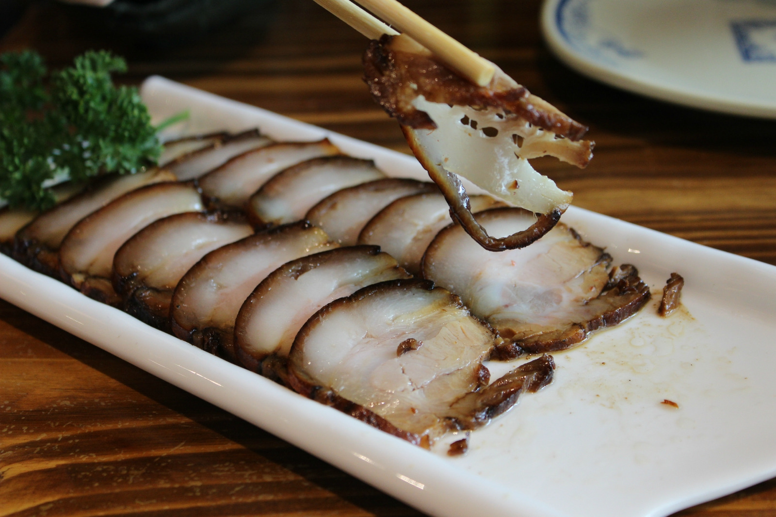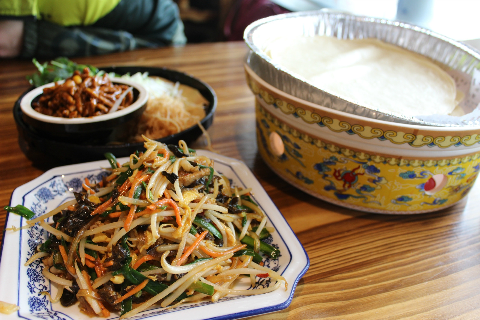 翻开菜单,既有京酱肉丝、酸菜粉这类传统卷饼配菜,也有店家招牌熏肉,XO酱炒合菜等,菜量正常(在南方算大的),价格适中,味道不错但有些偏油,配春饼正合适。值得一提的是春饼上桌放在专门保温的盒子里,吃起来不会太凉,非常有心的店家。