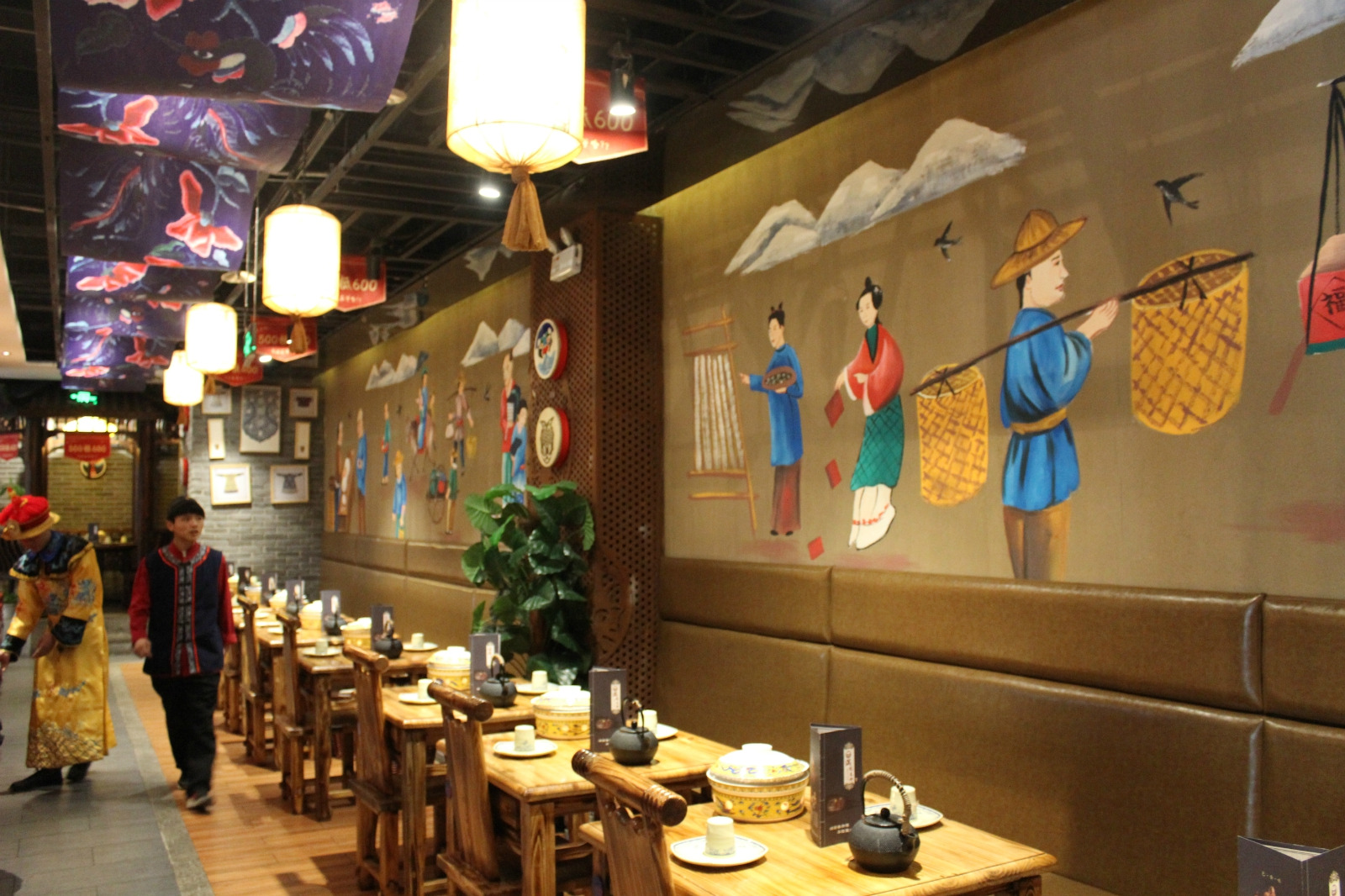 满园春饼在沈阳开了很多家,太原街、中街都有,我这次去的是位于铁西万达的分店,里面的装修装饰都是统一的古朴感觉,服务员也是一身旧式服装,还有扮演皇上侍卫的,给人一种来到清宫的感觉,挺有意思的。