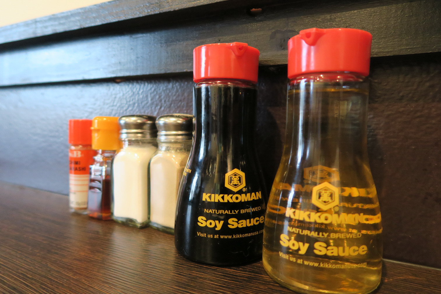 酱油和辣油以及一些其他调料,都有英文标示