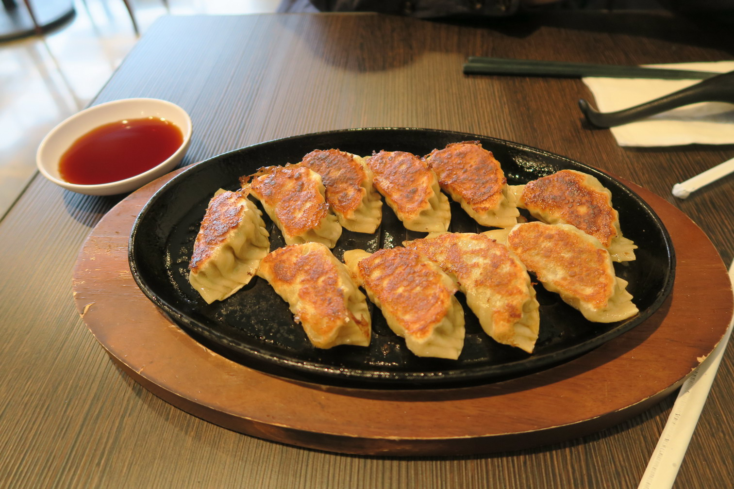 店内主打就是拉面,最普通的拉面一碗大约40元,有12片肉的超丰盛叉烧面一份90元,这个量一般人真心吃不完,但着实看着很拉风吃着也很爽,而且90元的特制拉面可以免费配3种配菜,看起来比较奇怪,是豆腐、玉米以及熟鸡蛋等,果然不是走的普通日本拉面套路。铁板饺子味道很不错,我喜欢炸的酥脆的饺子,正好这家炸的也比较干,吃起来也比一般日式饺子口感清爽。