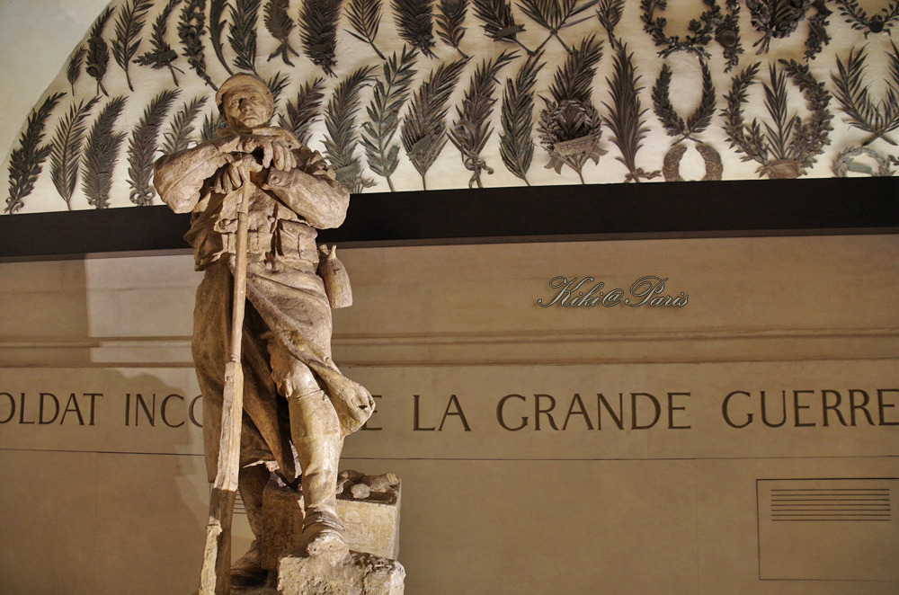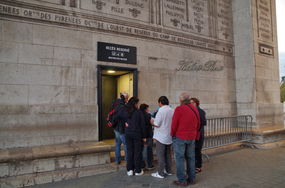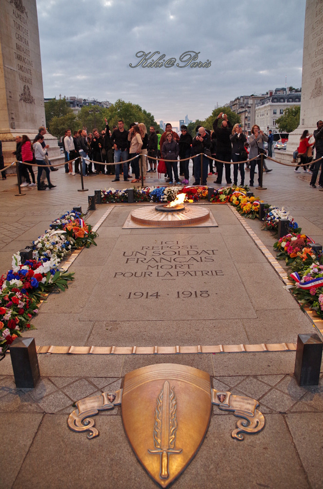 值得注意的是,可以看看在一条中轴线上的新凯旋门和协和广场方尖碑,以及卢浮宫的小凯旋门。下来后才发现它是有电梯的,有通票的朋友可以不用排队,直接找电梯,尤其是老年人。1920年凯旋门下建造了一座无名战士墓,纪念参加一战的150万法军官兵。长明火和鲜花让人感觉庄严而充满希望。