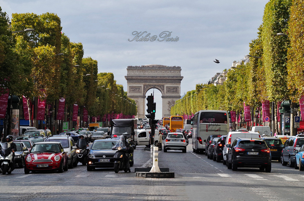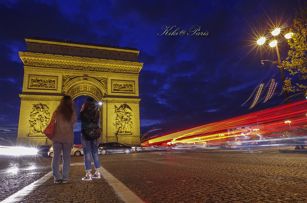正对着凯旋门的马路中央有个拍摄点,虽然汽车在身边呼啸,但还是很安全的,只是拍着风景会有游客乱入。如果你的镜头不够广,多走一个路口也是有拍摄点的,那里拍照的人会少些,缺点是凯旋门中间会有红绿灯。