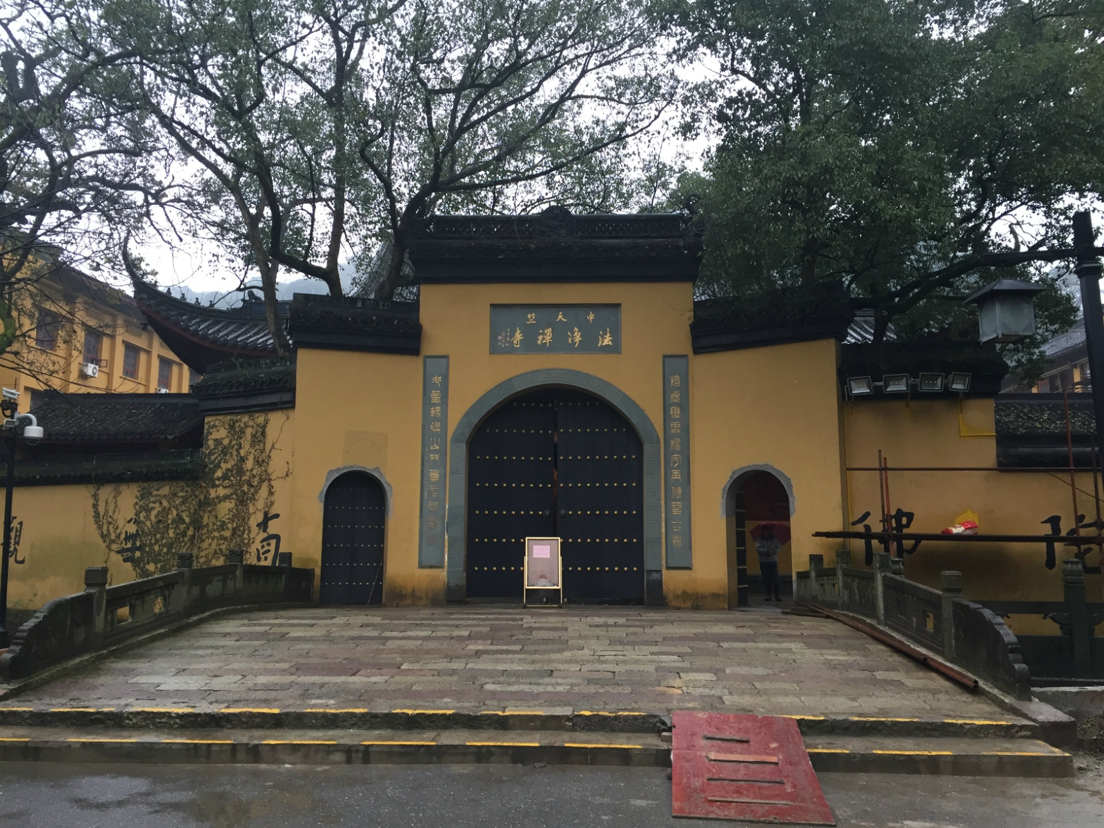 这次来杭州灵隐寺刚好是下雨天,虽然雨天却丝毫没有影响游玩的兴致,于是在参观飞来峰景区之余也去附近的天竺路逛了逛。天竺路并不在飞来峰景区内,这条小道就在景区入口旁边,所以引起了我的兴趣。一路上大多是卖纪念品,香烛,字画,衣服等的店铺,但再往深处走就是一些老的住宅还有隐藏着的法镜寺和法净寺。相同的读音却是不同的两座寺庙,另外还有一座法喜寺,此三寺并称三天竺,法净寺排行老三,从规模上来看是三个寺庙中最小的,但却各有各的特色。而且中国茶文化研究组织是在法净寺成立的,不过来的当天刚好遇上法净寺整修所以没有机会入内。法净寺从外观上看虽称不上气势宏伟但古树参天也有一副千年古刹的味道。可以地铁转公交坐103路到中天竺站下车。