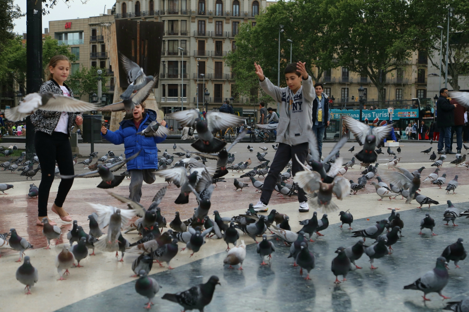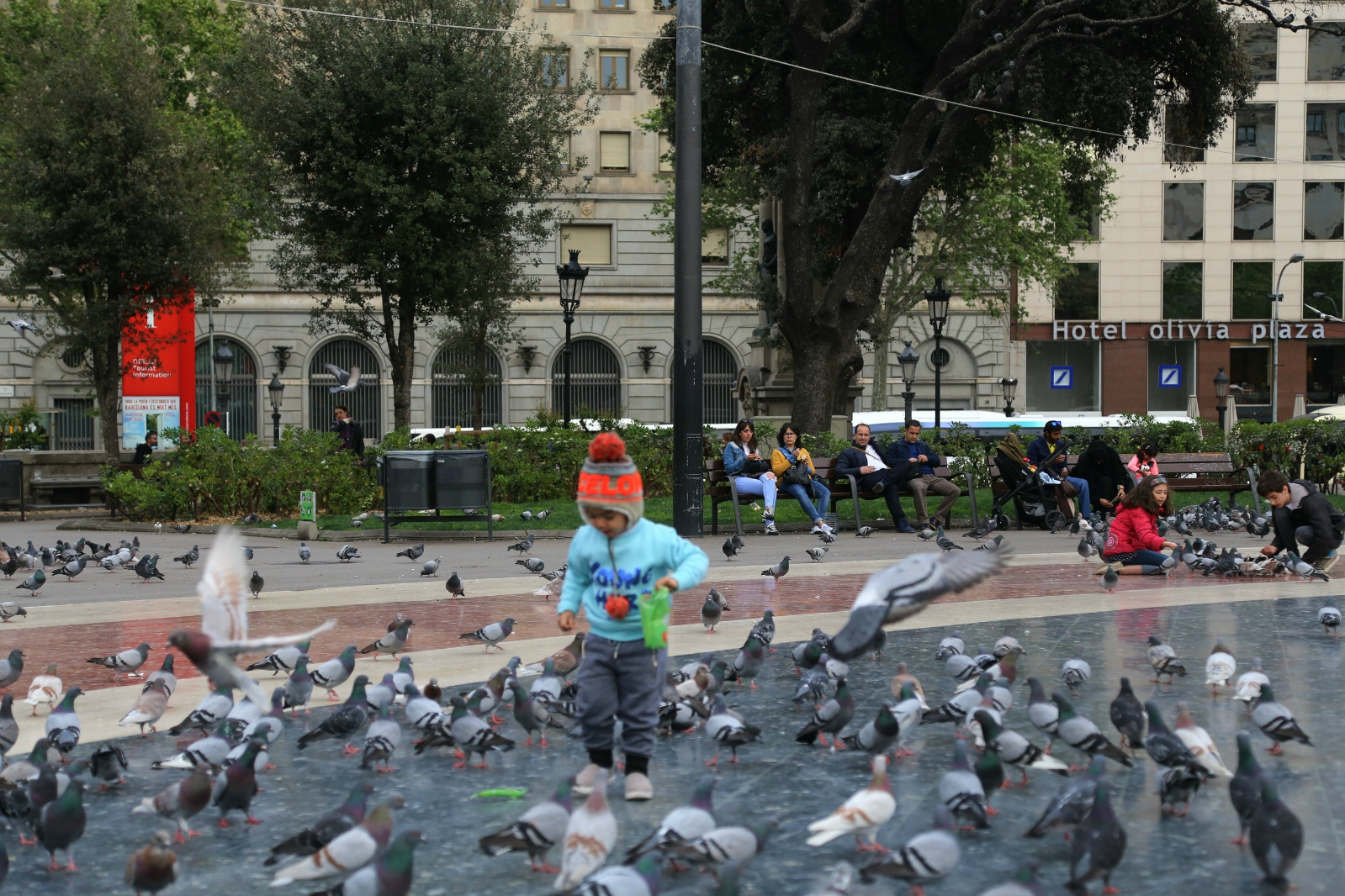 继续向前,加泰罗尼亚广场在大街尽头,这里有个大喷泉,晚上有灯光照射,非常夺目,广场上成群的鸽子飞来飞去,小朋友忙着与鸽子“共舞”,不赶时间的话,坐在花园的椅子上,慢慢度过美好的一天,饿了,推荐广场旁边的一条美食街,从斗牛场旁边的小路走进去,有一家老奶奶的披萨,1903年创建的老店,味道很赞。