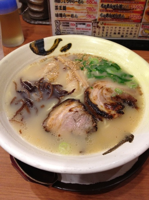 780日元的标准碗拉面,2大片叉烧肉,口感非常好。配了木耳和葱花,口味棒棒的