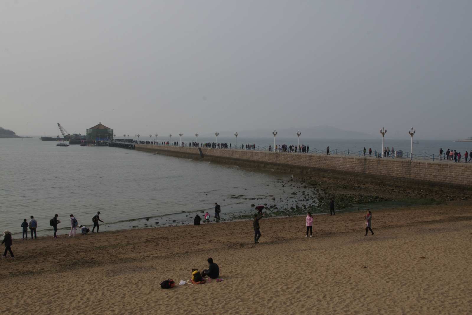 回澜阁,在青岛著名的景点栈桥的尽头。这是一座中国式的八角楼建筑,黄色的琉璃瓦,24根亭柱,内部有螺旋式的阶梯,非常的漂亮。在这里是远眺小青岛和第一海水浴场海景的好地方。目前它正在维修,所以封闭不能入内参观,估计起码要到年底才会再次开放了。