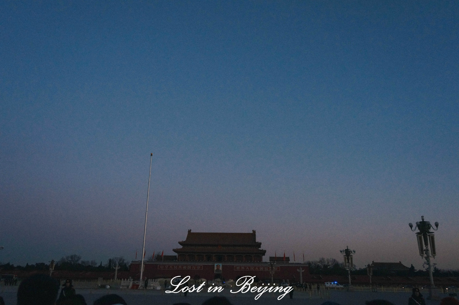 我去的时间是在一月下旬,这时的升旗时间是7:30,六点半出门时天还是黑蒙蒙的,不过赶到里面已经失去了最好观赏的根据地,看不见帅气的仪仗队走过。国旗像那初生的太阳一样缓缓升起,国歌放了三遍,全场有人一起唱着国歌,这种氛围让人觉得看升国旗虽然起得早,但这是非常值得一来并热血沸腾的。