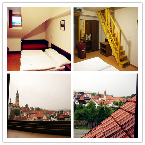 Mlyn是我们在CK小镇的住宿地,临近伏尔塔瓦河,酒店不大,却很干净,幸运的是给我们升了复式房,缺点是没有大窗,只有一扇小气窗,看风景比较吃力。躺在舒适的席梦思上,一觉醒来已是旁晚,出去觅食去喽。