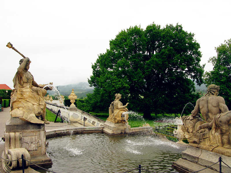 一般城堡都有一片花园,从彩绘塔下来,左转穿过门洞,果然绿意酣然,花园中心有一个喷泉,据说喷泉的雕塑目前都是复制品,从城堡下来,回酒店休息一会儿,毕竟从布拉格到CK,一路上都在看风景,还没有好好合过眼。
