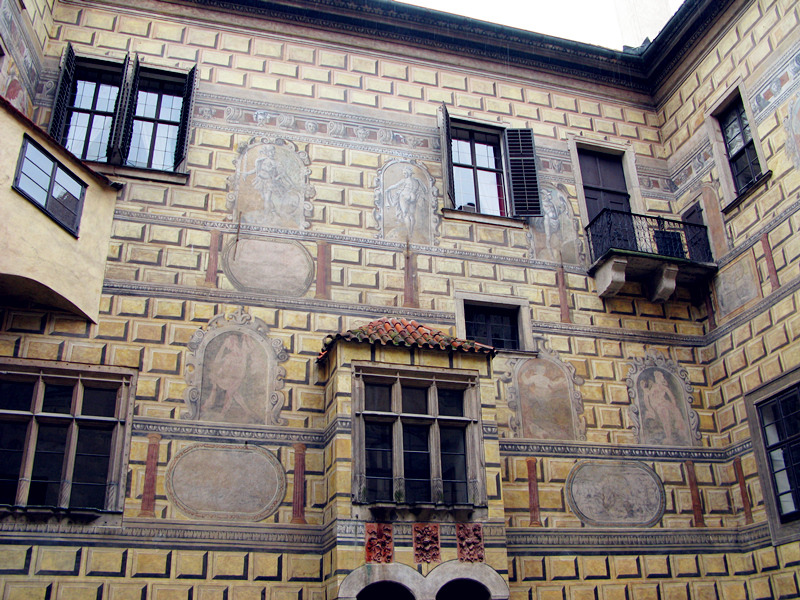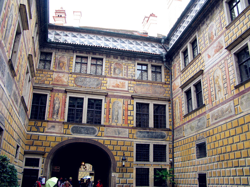 中庭与中庭之间由走廊连接,发现城堡内还有个收费博物馆,但不收欧元,只收捷克克郎,要去的同学要注意了,备些捷克克郎零钱是必须的。