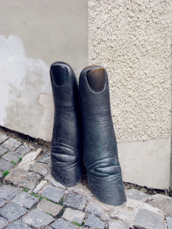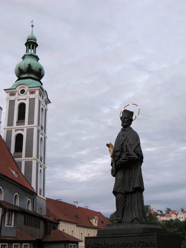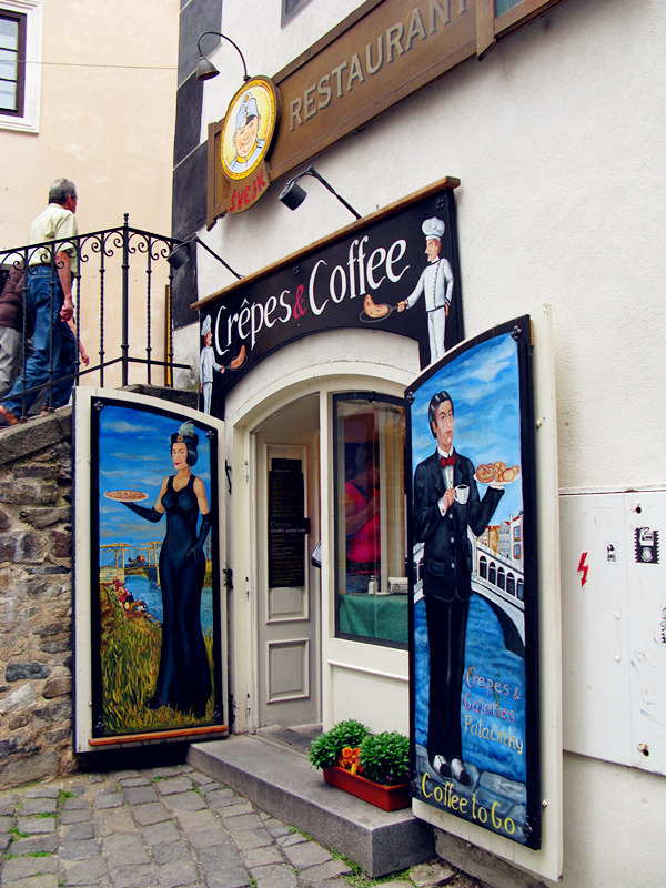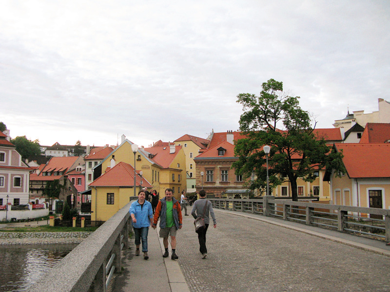 从老城通过桥的对面是帕尔肯街,桥的两旁是十九世纪的雕像,一边是十字架上的耶稣,另一边是木桥的赞助人圣杨.而波慕斯基, 桥下有许多餐馆和咖啡屋,虽然当地人不讲英语,餐牌也是捷克文,不过对照图片还是能知道所点的晚餐是什么。
