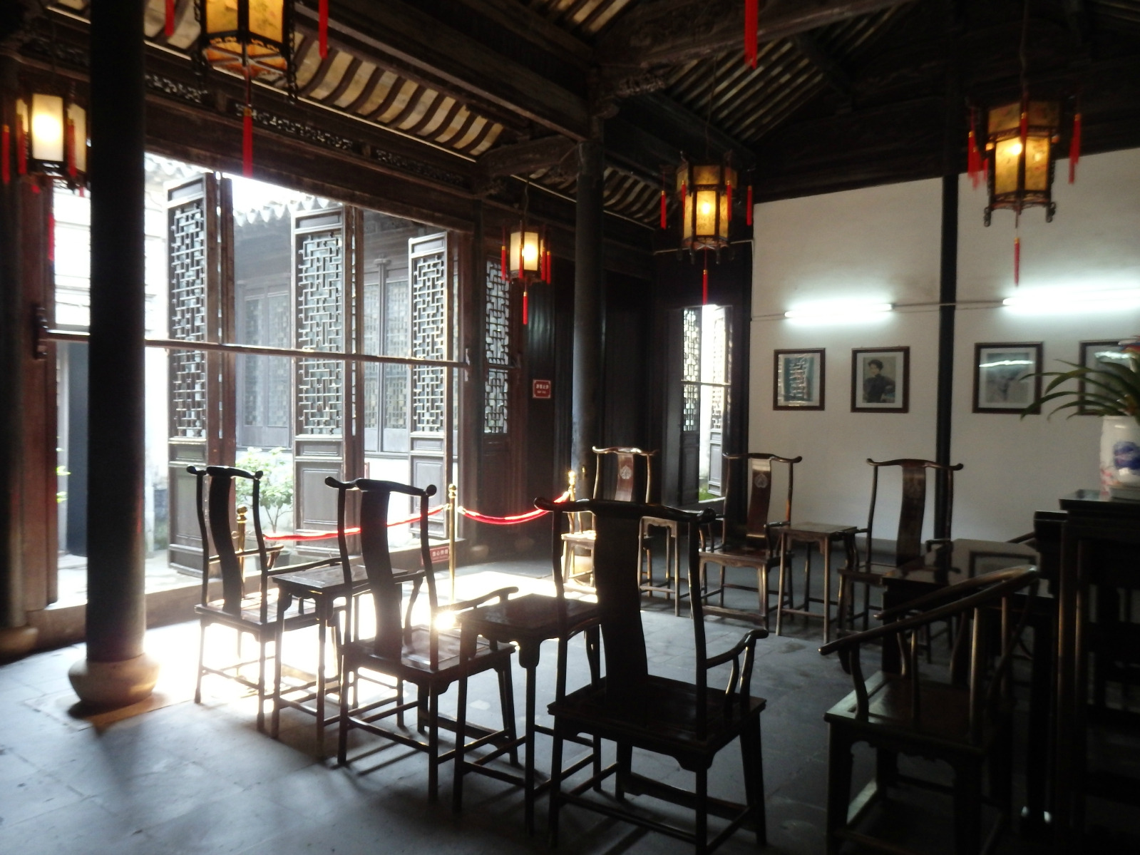 萧宅位于甪直镇中市上塘街,在王韬纪念馆的斜对面,两者隔着水道相望,门票含在甪直古镇联票之内。这座典型的江南水乡民居建于清光绪已丑(1889)年,原本为甪直镇上一名姓杨的武举人所建,后来出售给萧芳芳的祖父,建筑雕刻精美,布局规整,是很典型的江南民居类型。现在被辟为萧芳芳演艺馆。