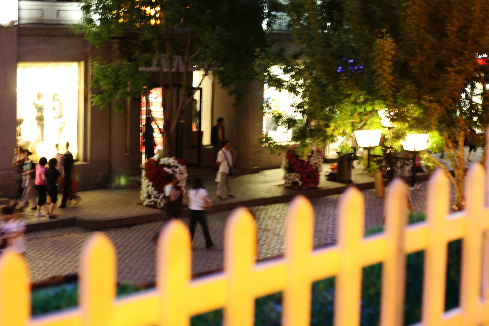 二楼户外可以看到中央大街街景,就是晚上有点冷。