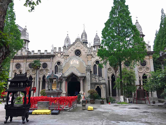 古德寺,位于武汉市汉口黄浦路,交通还算是方便,公交车30路就在门口,轻轨1号线在头道街站下车,往前走100米有一条小巷右转进去一直走到头就是古德寺大门了,但是这条路是在居民巷子里,可能不太好找,要是打听一下居民还是可以的。古德寺是一座清朝的寺庙,原本这样一座清朝的寺庙在国内很常见,但是古德寺却是中国唯一的一座独特的寺庙!古德寺不收取门票,但是要买香火券,有8、15、38元三种,我感觉就是变相的收门票。我买的最便宜的8元的,也没有要香,直接就进去了,寺庙院落不大,但是建筑风格绝对独特,看上去非常像教堂,再看又有点像清真寺,但是屋顶又有佛像,打听一下才知道,这种建筑风格是借鉴了印度那烂陀寺的建筑,有增加了一些自己的设计,才形成了今天我们看到的独特的佛教寺庙。寺庙里看到的都是二僧,可能因为是寺庙的原因和不是很好找的原因吧,游客不是很多,但是我强烈建议一定要来古德寺看看,真的是很壮观的,国内唯一的寺庙。里面现在有一个主殿,里面供奉三如来,还有一个天王殿,侧面还有供居士念经的一个佛堂,院子里还有一尊在泰国迎请回来的四面佛。在这里让我感觉到寺庙的宁静,但是同时又感觉像身在一个教堂里,又感觉来到了泰国,真的是很神奇啊。寺庙里很适合拍照,喜欢拍照的朋友一定要来,寺庙里可提供休息的座椅很多。建议来寺庙的朋友不要穿过于暴露的衣服,殿内不要吸烟,大声喧哗。寺庙外面住宿的地方不是很多,但是附近还是有住宿的酒店,饭店就有很多了,所以吃的是不担心了,打车不远也可以到万达广场。