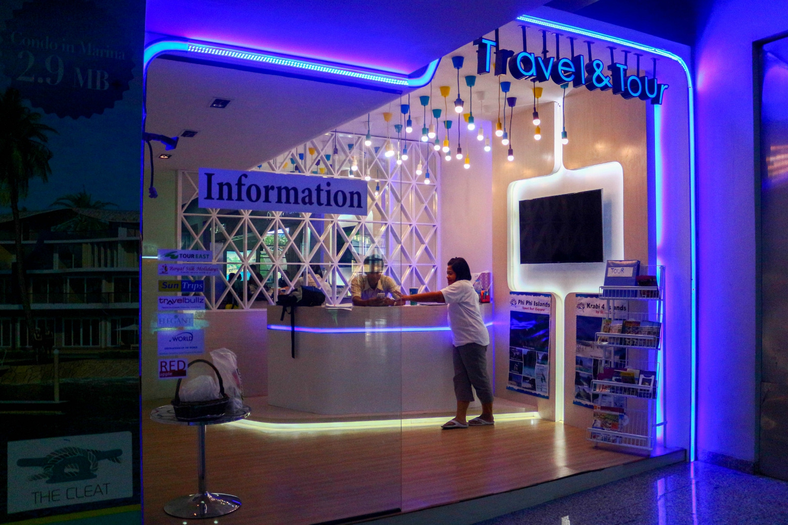 有的旅行社铺面还弄得很现代化,可以免费领取甲米地图。