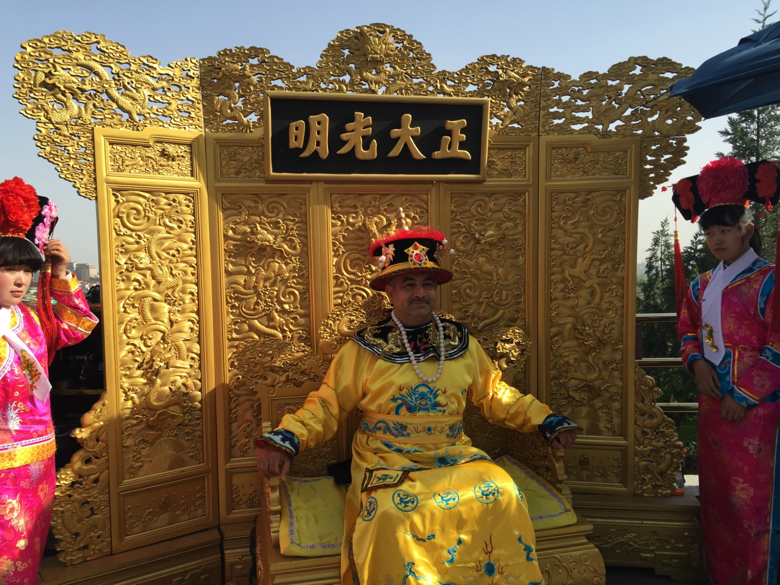 山顶上有古装照相,25元一位,如果加丫鬟的话还要多收钱,一个丫鬟10块,这赚钱方法也是绝了。外国大哥坐上龙椅后开心的不得了,看起来还蛮有帝王相的嘛。