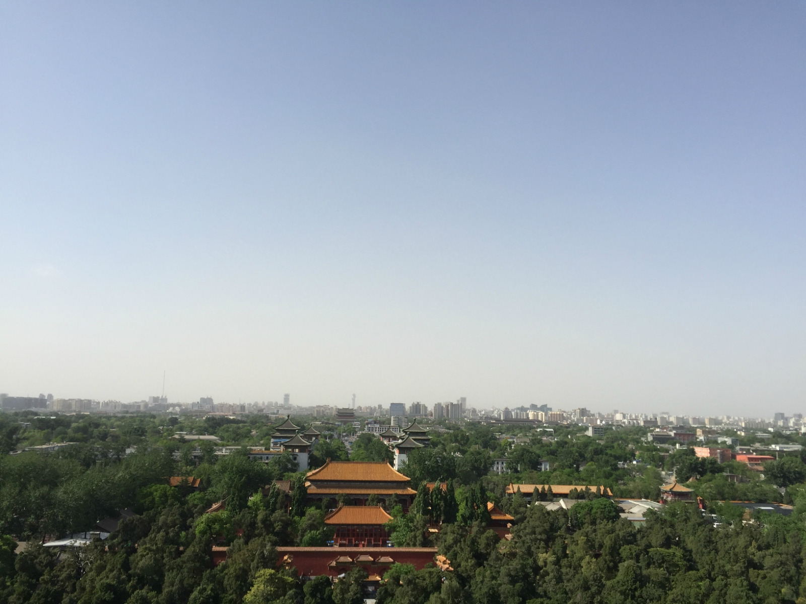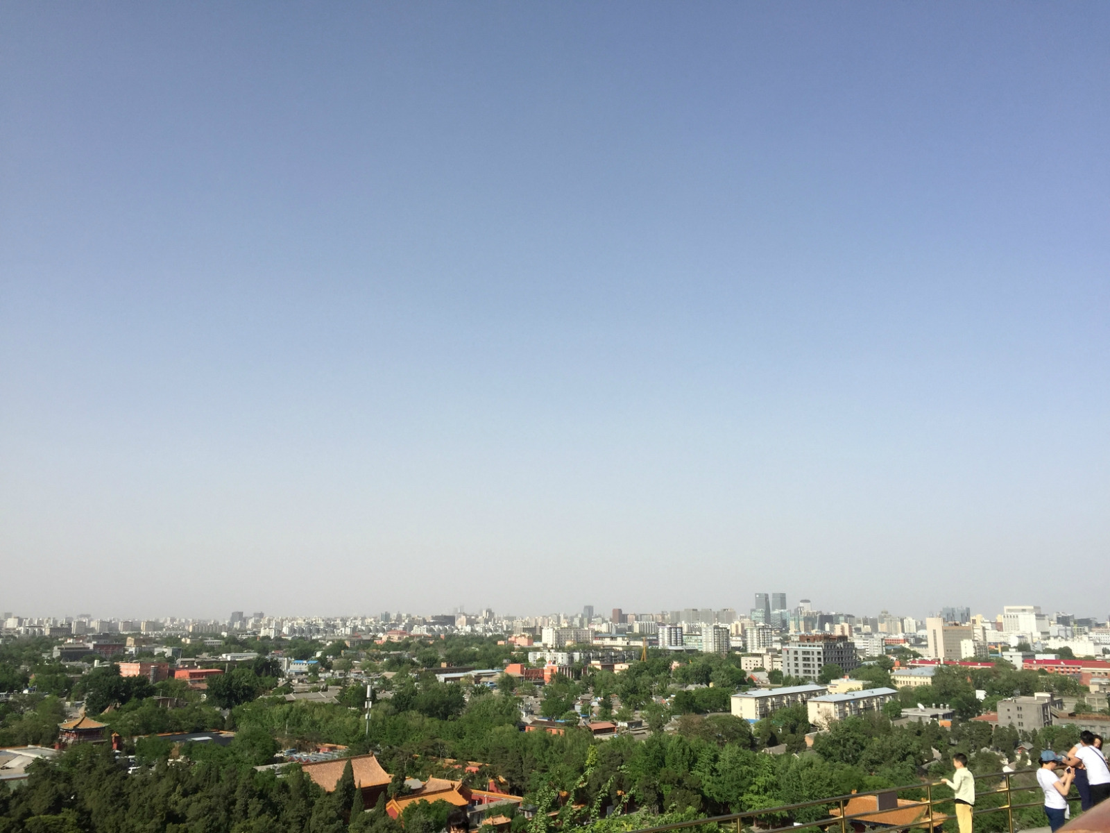 万春亭四面观景,可以看到北京各个方向的风景。城中心大多是低矮的建筑,二环外都是高楼大厦。