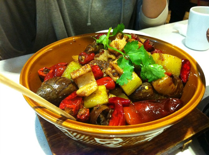 香锅蜗牛,因为不是很喜欢吃蜗牛,所以吃里面的配菜,莴笋很鲜,应该是新笋,竹笋的香气完全尝得出。