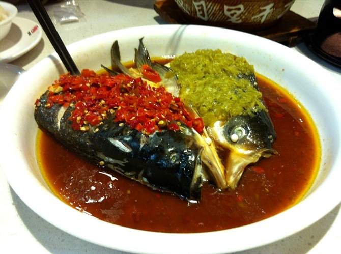鸳鸯鱼头,朋友们一个很喜欢剁椒鱼头,一个很喜欢吃里面的鸡蛋面。我觉得都很赞。