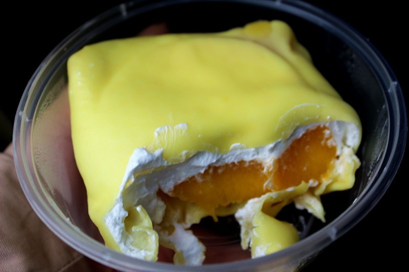 芒果班戟 20米一只 比满记的两只装分量还要足哦 大大的一只 里面有大块芒果和奶油,芒果微酸,不然绝对没有可挑剔的地方