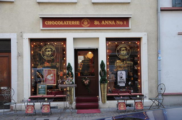 在主街的开端的不起眼小角上有一家充满了洛可可色彩的小店。小店的主人是一个已经快90岁高龄的老太太,虽说小店没有她年纪大,但是也有几十年历史了。在这里你除了能找到来自世界各地的各式巧克力外,还能吃到最具本地特色的雪糕。为什么这么说? 因为这里的雪糕都是小店请海德堡小作坊生产的,种类非常特别。特别推荐的是红胡椒白巧克力味道的,里面放了一点海盐,吃起来甜中带一点点的微咸和红胡椒的香味,口感多重,让人怎么吃都不会腻。