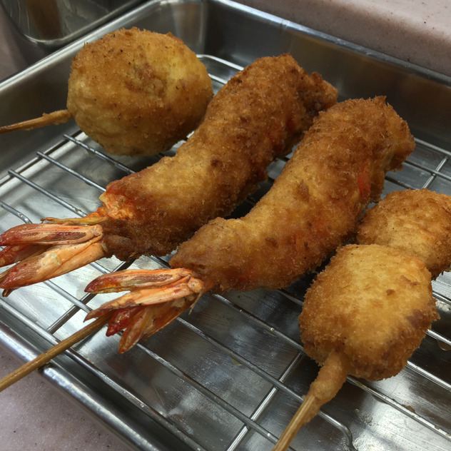 炸串主要有肉串、虾以及藕、花菜等蔬菜,人均一餐消费约150元上下,价格在大阪来说,价格还是比较合适的