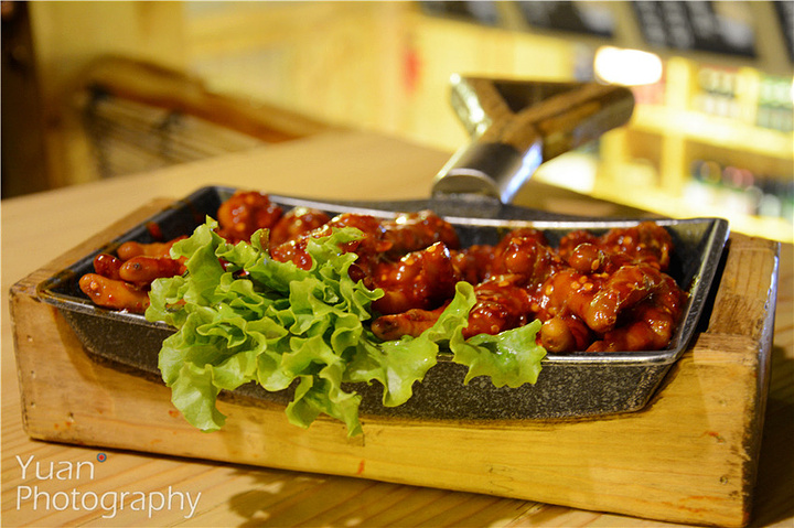 香辣入味的鱿鱼。吃过晚饭之后接到朋友的邀请,一起到特别火爆的小木屋米酒店坐坐