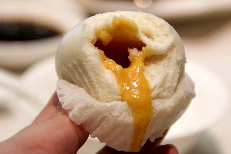 真的有流沙的流沙包~里面的奶黄馅细腻。咬开皮子轻轻一挤,里面的内陷就争先恐后的流出来了