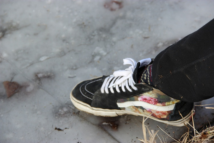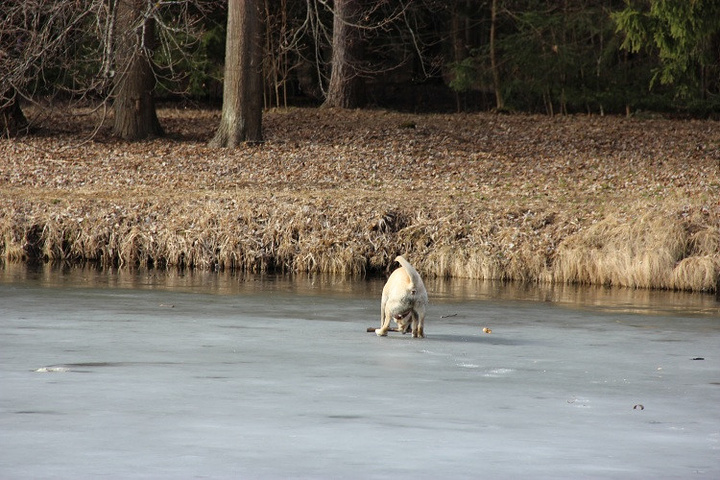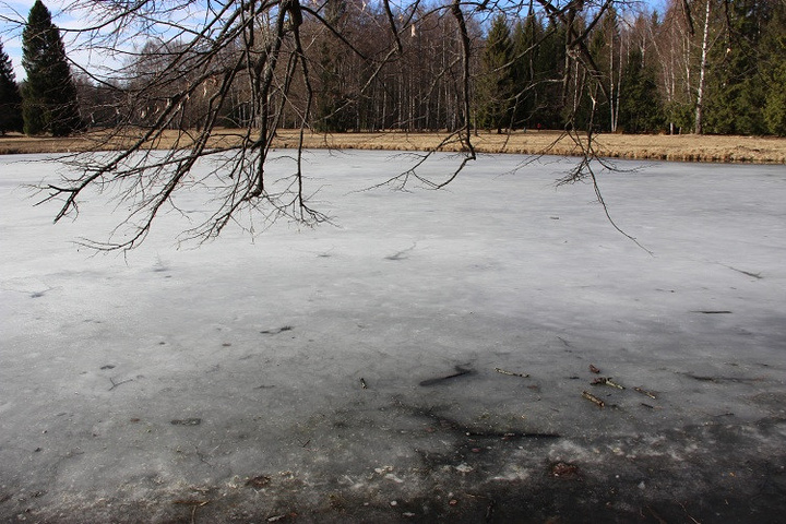 湖面结冰了。