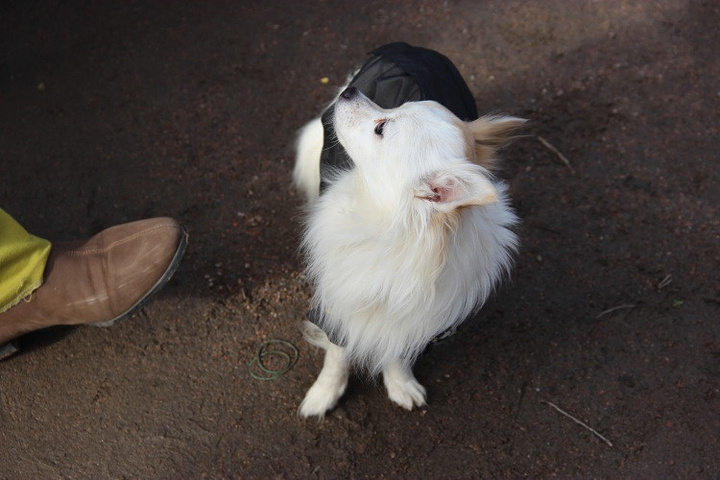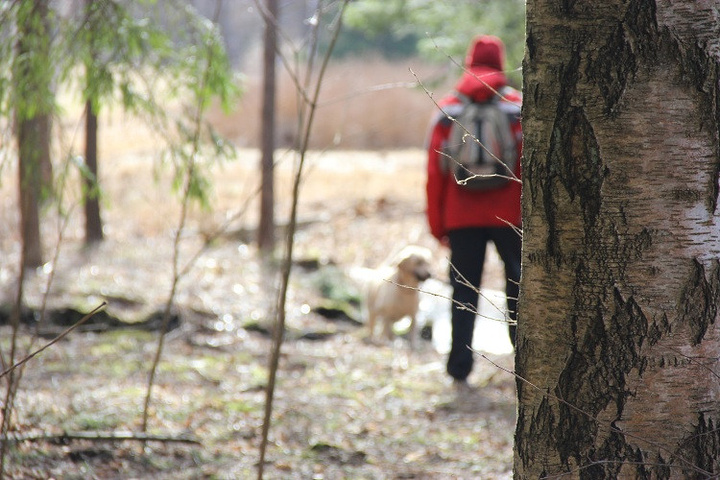 主人故意跑很远,小狗狗回来后找不到主人, 我告诉它主人在那边,他又跑过去追主人了。