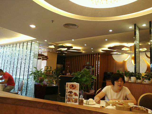 公司就在附近,去过挺多次的了,环境很好,早茶在规定时间内买单收台还可以打折,当然,也有很多的团购,价格还算优惠,昨天两个人吃了人均50元,挺实惠的。先说地理位置,就在华景新城的BRT站那里,下车就能看到路边有牌子,不用四处找。观光电梯直接上去3楼,两边都是喝功夫茶的,茶位5元,中间大厅普茶,茶位3元。因为附近很多写字楼,所以人很多,中午如果想来的尽量提早一点,不然就需要等位了。我们12点16分点的点心,因为他们说是立点立蒸的,所以可能等的时间需要稍微长一点,如果午休时间短的同志们就提早点餐或者提早过来罗,等了40分钟猪肝粥才上来,猪肝粥煲的稍微浓稠了一点,口感不太好,之后上了凤爪,味道刚刚好,大爱~~红米肠差评,等了那么久,上来的是冷的,差点就把它退回去了,里面的那一层都软了,都不知道做好多久,可能人多,就不计较了。榴莲春卷等到全部都吃完了都没有来,最后是催来的,说厨房把单弄丢了没有做出来,真影响心情,