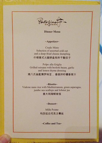 奢华晚餐时间, Portofino碧涛意国渔乡餐厅,看菜单